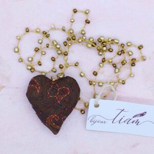 Collana con ciondolo Cuore ricamato a mano con chiave di violino